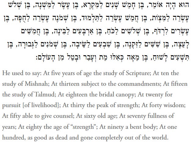 The changing of the secular year to 2025 and the current date means that there is less than 12 weeks until my 40th birthday, please God. In many societies, as is seen in the quote above from Avot (Ethics of Fathers) 5:21 that describes the various stages of one’s life, reaching this age is given a lot of significance. And, being that a lot of my friends are the same age as me, I thought that I would maybe impart some of the “wisdom” I have acquired during the stage between “becoming-of-age” and turning “middle-aged”.